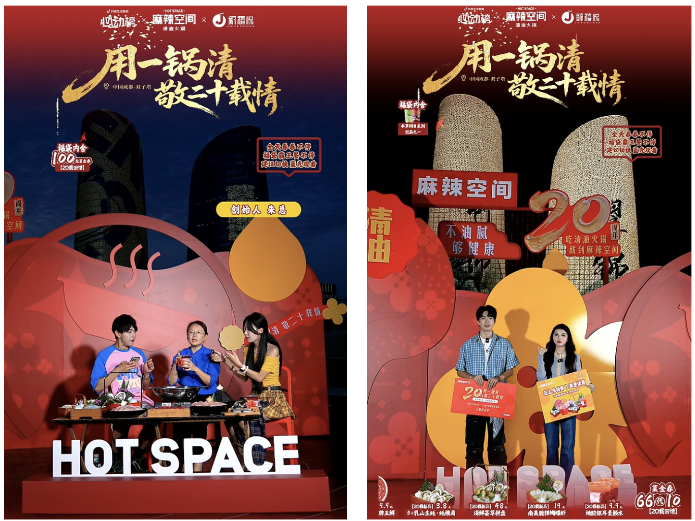 为了让这份“灵魂”被更多人读懂,麻辣空间在国庆期间以“用一锅清油,敬20载情”为主题,在成都双子塔前策划了一场直播。